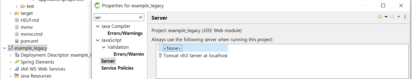 레거시는 별도의 서블렛 컨테이너(웹 애플리케이션 서버)를 미리 준비하고 그 위에 스프링 프로젝트를 올린다.