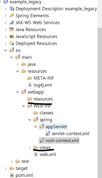spring legacy 프로젝트 생성시 자동으로 생성되긴 하지만 web.xml에 ContextLoaderListener를 통해 Dispatcher Servlet을 서블렛 컨테이너(톰캣)에 올리는 것을 명시한다. POST 요청 내에 한글 처리를 위한 UTF-8 필터도 수동으로 달아줘야한다.