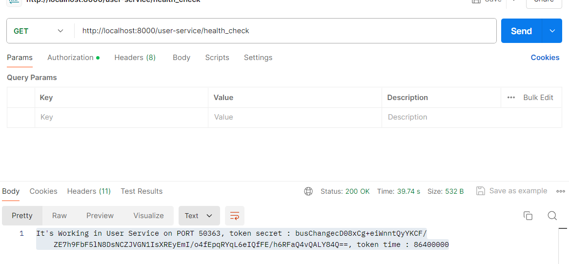 return String.format("It's Working in User Service on PORT %s, token secret : %s, token time : %s" ,