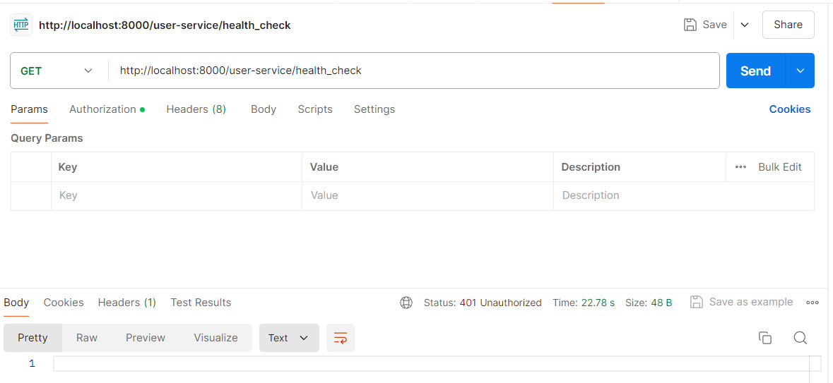 재로그인을 통해 변경된 토큰 키로 만든 토큰으로 health check