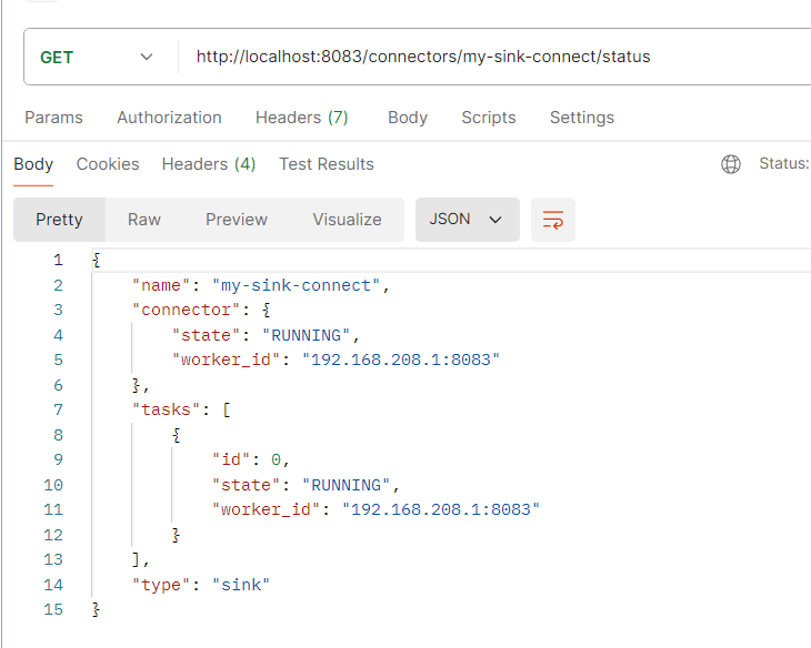 생성된 데이터를 Consume 하기 위해 Sink Connect를 등록합니다.